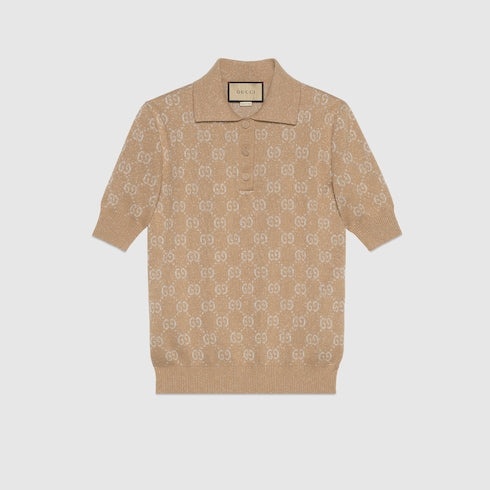 Gucci Lame GG Jacquard Knit Polo Code 678435S700 beige All sales are final. We only accept returns if there is a quality issue.