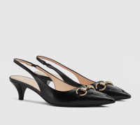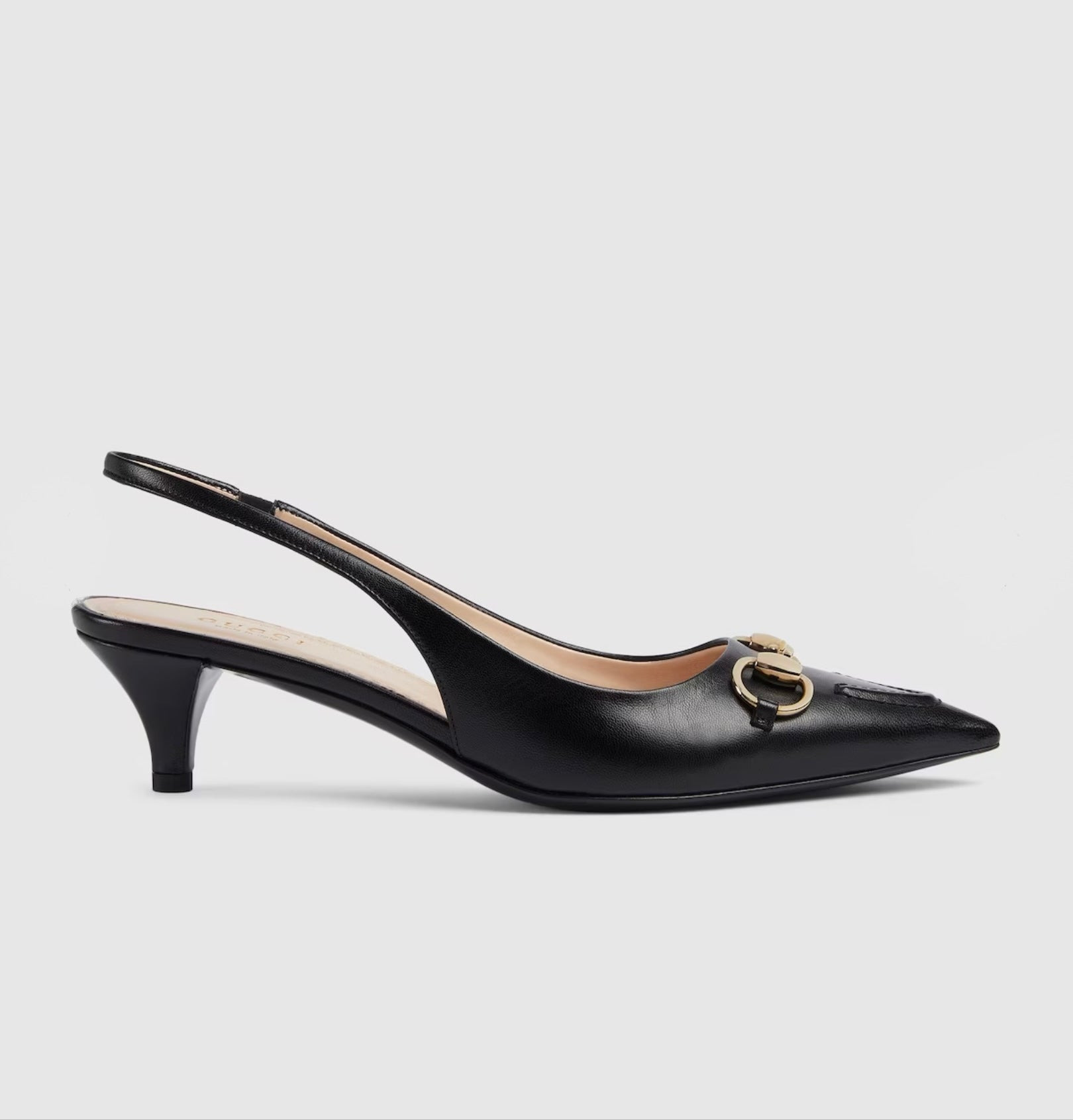 Product code: 782407G Pumps Black Pointed toe Elastic strap closure Horsebit detail Leather sole Smooth grain Leather Heel height: 4,5 cm All sales are final. We only accept returns if there is a quality issue.