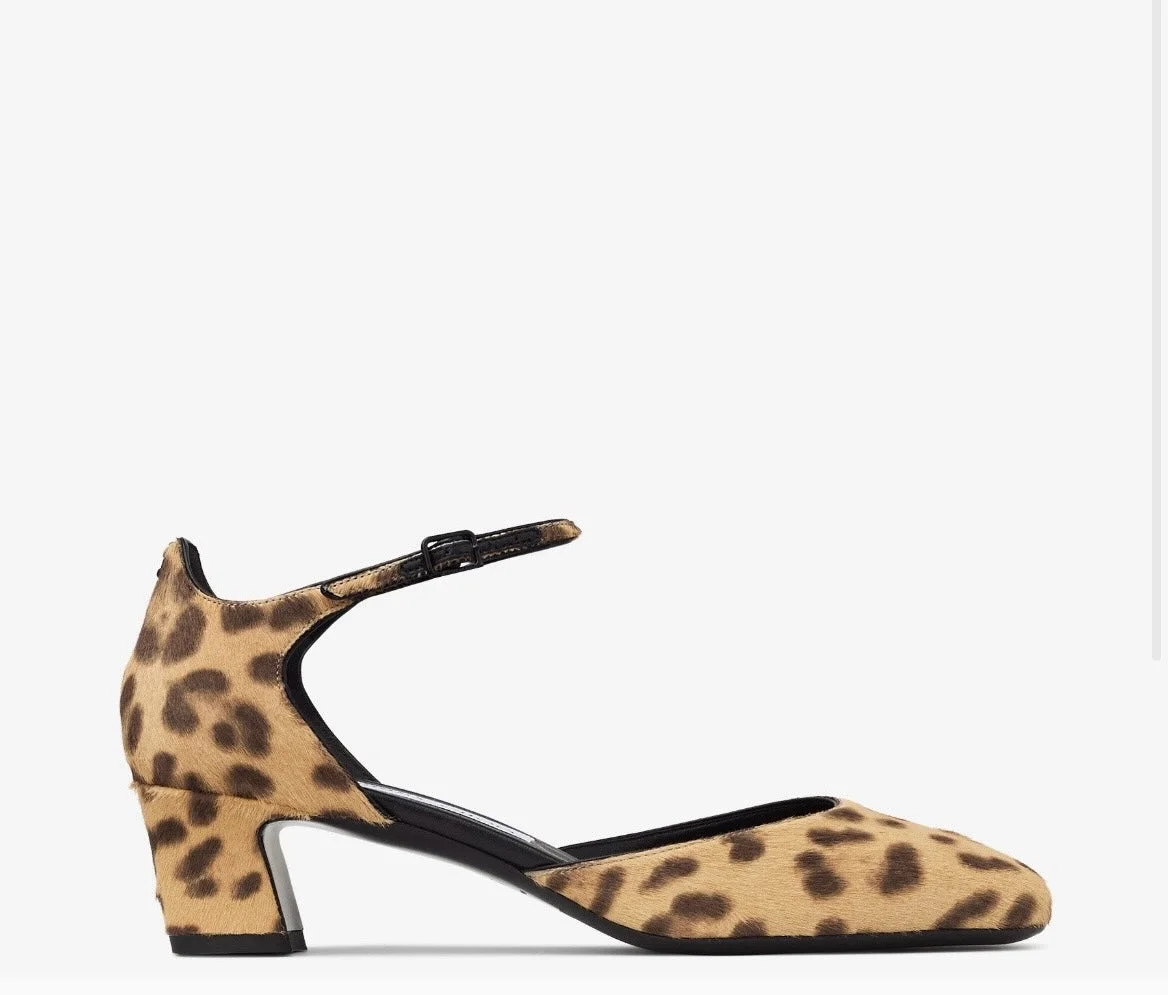 Pixie Block Heel 45 Natural Leopard Print Pony Pumps