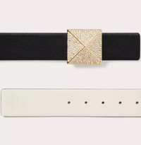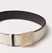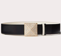 Valentino Garavani One Stud Reversible Shiny Calfskin Belt 40mm Code: 2W2T0X29UHR7BZ S640BLACK-LIGHT IVORY/ CRYSTAL - Dimensions: H. 40 mm / 1.6 in. - Made in Italy All sales are final. We only accept returns if there is a quality issue.