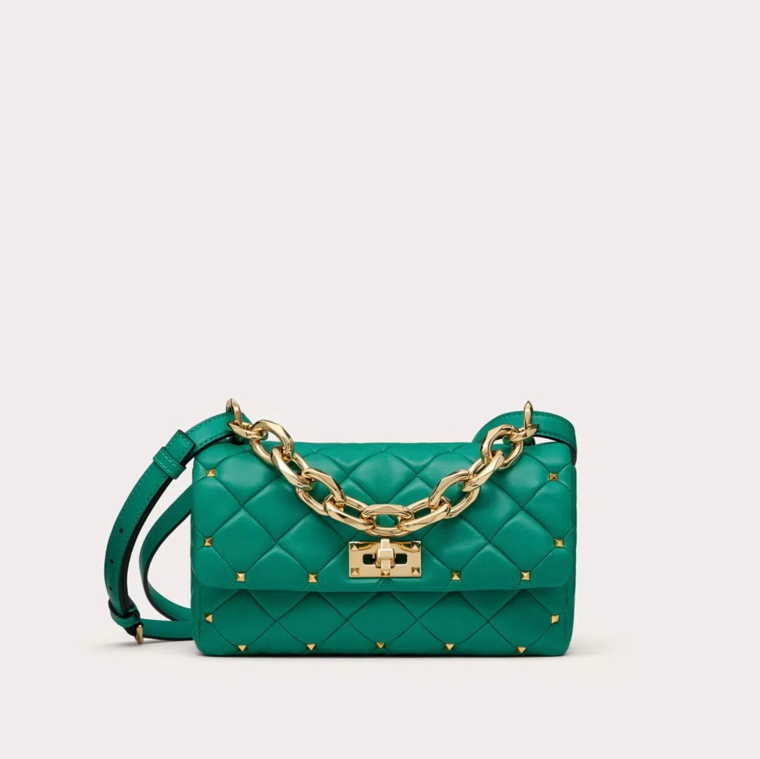 Green Product code: 5W2B0Q04IGXZHT JACO - Gold-finish studs, chain and hardware - Adjustable leather shoulder strap - Flap with twist-lock closure - Nappa lining. Interior: one slip pocket and one zip pocket - Shoulder strap drop length: 55 cm / 21.7 in. - Dimensions: W23xH17xD7 cm / W9.1xH6.7xD2.8 in. - Made in Italy All sales are final. We only accept returns if there is a quality issue.