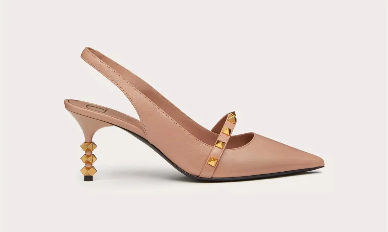 Rockstud Slingback Pump with sculpted heel in kidskin 70 mm