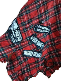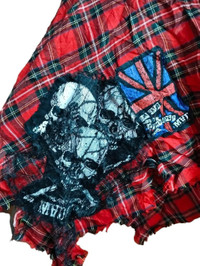 If Six Was Nine - Mad Punk Mini Skirt Red Tartan Skull Zipper Patch Design