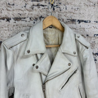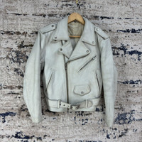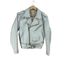 🔥 Vintage FREEDOM Bikers Leather Jacket 🔥 🤝KINDLY PLEASE READ ALL THE DESCRIPTION BEFORE PURCHASING 🤝 DON’T HESITATE TO ASK ANY QUESTION : Kindly see the actual measurements : Please refer the actual measurements given and compare it with your best fitting clothes, by using the size on tag is not always accurate. ( All measurements were taken lying flat ) - INCHES - UNDERARM TO UNDERARM : 19.5 LENGTH : 23 SHOULDER TO SHOULDER : 19 SLEEVE LENGTH : 22.5 HEM : 15.5 TAGGED SIZE : 36 MADE IN USA COLOUR : LIGHT BLUE CONDITION : 7/10 ( vintage perfection ) Yellow Stains and minor defects ( please refer to the photo for more confirmation ) Do not expect the item to be 100% in pristine condition. The colour might be slightly different due to lightning effects. Good overall condition for vintage item Kindly see all picture Thank you so much for your visit SHIPPING via : DHL Express / FedEx ( with tracking number ) Estimated time : 1 - 2 weeks Shipping proses will take 1-3 working days after payment are cleared. **** No return, Exchange or Refund *** ‼️All sale are final ‼️ Please leave your PHONE NUMBER for shipping purpose. Please click “❤️ FOLLOW” button. This will allow you to keep update with all of my new listings. Thank You..