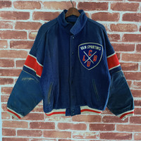 🔥VINTAGE HEAVY DISTRESSED VAN JAC WOOL LEATHER VARSITY JACKET 🔥 KINDLY PLEASE READ ALL THE DESCRIPTION BEFORE PURCHASING DON'T HESITATE TO ASK ANY QUESTION : Kindly see the actual measurements : Please refer the actual measurement given and compare it with your best fitting clothes, by using the size on tag is not always accurate. ( All measurements were taken lying flat ) (INCHES ) UNDERARM TO UNDERARM : 25 LENGTH : 26 SHOULDER TO SHOULDER : 26 SLEEVE LENGTH : 20 TAGGED SIZE : FREE SIZE Condition : 5/10 ( Heavy distressed, vintage perfection. Color has perfectly faded and print has perfectly cracked. It has some holes. Please enlarge the photo for preview. Do not expect the item to be 100% in pristine condition. The colour might be slightly different due to lightning effects. Good overall condition for vintage item Kindly see all picture Thank you so much for your visit SHIPPING via : DHL Express / FedEx ( with tracking no.) Estimated time : 1-2 weeks Shipping process will take 1-3 working days after the payment are cleared. **** No return, exchange or refund. All sale are final ! Payment method : PAYPAL - Please leave your PHONE NUMBER for shipping purpose - 😊 Thank you for visiting my store 😊