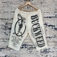 🤝KINDLY PLEASE READ ALL THE DESCRIPTION BEFORE PURCHASING 🤝 DON’T HESITATE TO ASK ANY QUESTION : Kindly see the actual measurements : Please refer the actual measurements given and compare it with your best fitting clothes, by using the size on tag is not always accurate. ( All measurements were taken lying flat ) - INCHES - WAIST : 40 OUT SEAM : 28 INSEAM : 17 FRONT RISE : 13 LEG OPENING : 9 TAGGED SIZE : ONE SIZE MATERIALS : 100% COTTON MADE IN USA CONDITION : 7/10 ( vintage perfection ) Please enlarge the photo for preview. Used but in good condition. Do not expect the item to be 100% in pristine condition. The colour might be slightly different due to lightning effects. Good overall condition for vintage item Kindly see all picture Thank you so much for your visit SHIPPING via : DHL Express / FedEx ( with tracking number ) Estimated time : 1 - 2 weeks Shipping proses will take 1-3 working days after payment are cleared. **** No return, Exchange or Refund *** ‼️All sale are final ‼️ Please leave your PHONE NUMBER for shipping purpose. Please click “❤️ FOLLOW” button. This will allow you to keep update with all of my new listings. Thank You..
