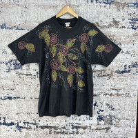 🤝KINDLY PLEASE READ ALL THE DESCRIPTION BEFORE PURCHASING 🤝 DON’T HESITATE TO ASK ANY QUESTION : Kindly see the actual measurements : Please refer the actual measurements given and compare it with your best fitting clothes, by using the size on tag is not always accurate. ( All measurements were taken lying flat ) - INCHES - UNDERARM TO UNDERARM : 23 LENGTH : 29 SHOULDER TO SHOULDER : 21.5 TAGGED SIZE : ONE SIZE MATERIALS : 50% COTTON 50% POLYESTER MADE IN USA CONDITION : 8/10 ( vintage perfection. Colour has perfectly faded ) It has some holes and heavy scuffs around the neck ) Do not expect the item to be 100% in pristine condition. The colour might be slightly different due to lightning effects. Good overall condition for vintage item Kindly see all picture Thank you so much for your visit SHIPPING via : DHL Express / FedEx ( with tracking number ) Estimated time : 1 - 2 weeks Shipping proses will take 1-3 working days after payment are cleared. **** No return, Exchange or Refund *** ‼️All sale are final ‼️ Please leave your PHONE NUMBER for shipping purpose. Please click “❤️ FOLLOW” button. This will allow you to keep update with all of my new listings. Thank You..