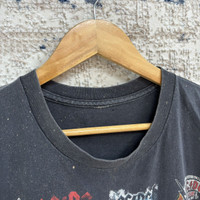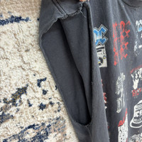 🤝KINDLY PLEASE READ ALL THE DESCRIPTION BEFORE PURCHASING 🤝 DON’T HESITATE TO ASK ANY QUESTION : Kindly see the actual measurements : Please refer the actual measurements given and compare it with your best fitting clothes, by using the size on tag is not always accurate. ( All measurements were taken lying flat ) - INCHES - UNDERARM TO UNDERARM : 26 LENGTH : 29.5 SHOULDER TO SHOULDER : 24 TAGGED SIZE : MISSING TAG MATERIALS : 100% COTTON CONDITION : 8/10 ( Distressed, vintage perfection. Colour has perfectly faded and print has perfectly cracked. It has some holes Please enlarge the photo for preview. Do not expect the item to be 100% in pristine condition. The colour might be slightly different due to lightning effects. Good overall condition for vintage item Kindly see all picture Thank you so much for your visit SHIPPING via : DHL Express / FedEx ( with tracking number ) Estimated time : 1 - 2 weeks Shipping proses will take 1-3 working days after payment are cleared. **** No return, Exchange or Refund *** ‼️All sale are final ‼️ Please leave your PHONE NUMBER for shipping purpose. Please click “❤️ FOLLOW” button. This will allow you to keep update with all of my new listings. Thank You..
