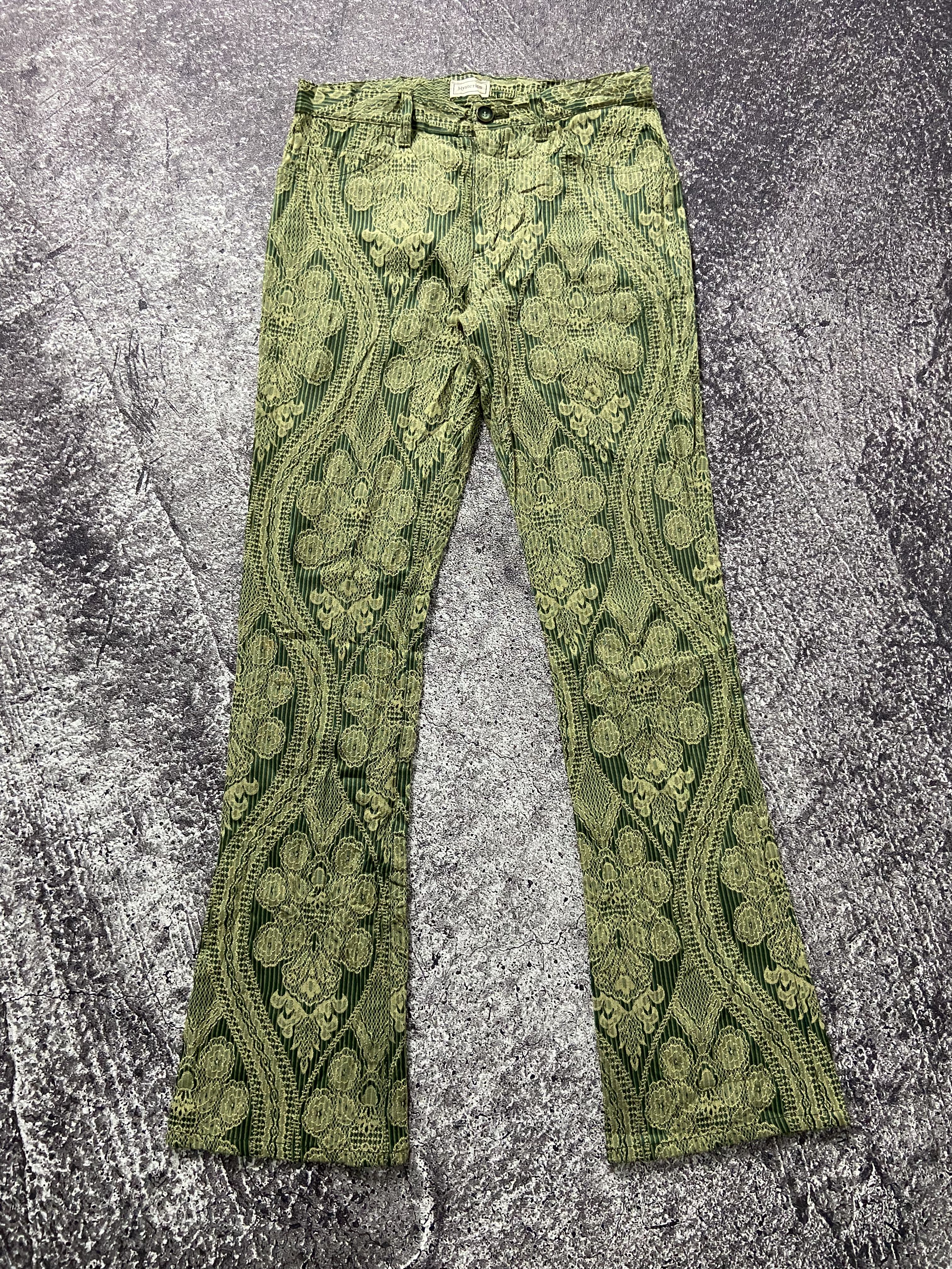 Hysteric glamour embroidery flared pants Size on tag M Waist 28 Length 48 inch Knee 7 inch Leg opening 8 inch Hip16.5 inch Front rise 9.5 inch Good condition Made in japan Polyester 52% Rayon 48% Please chcek detail #hystericglamour #archive #japanesebrand #luxury
