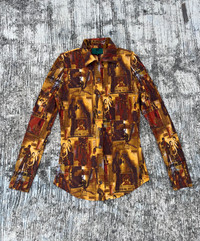 Chest : 18 inches Length : 27 inches Shoulder: 13.5 inches Sleeve length : 25.5 inches Good condition Man-women can be used Paypla ready