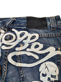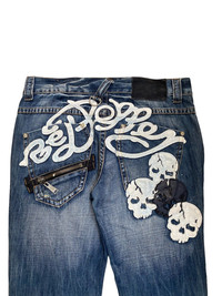 ITEM Japanese brand red pepper skull jeans Size : on tag 34 Waist : 34 (17inches) Length : 43.5 inches Before buying please check the details🙏 ❌ NO REFUND ❌ NO RETURN ❌ NO JOY Express shipping ✈️ Feel free to massge me anytime☺️
