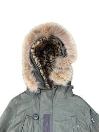 ITEM : moussy parka jacket leopard sherpa lining fur jacket Size : on tag 2 Chest : 20 inches Length : 30 inches Good condition Before buying please check the details🙏 ❌ NO REFUND ❌ NO RETURN ❌ NO JOY Express shipping ✈️ Feel free to massge me anytime☺️