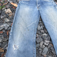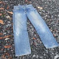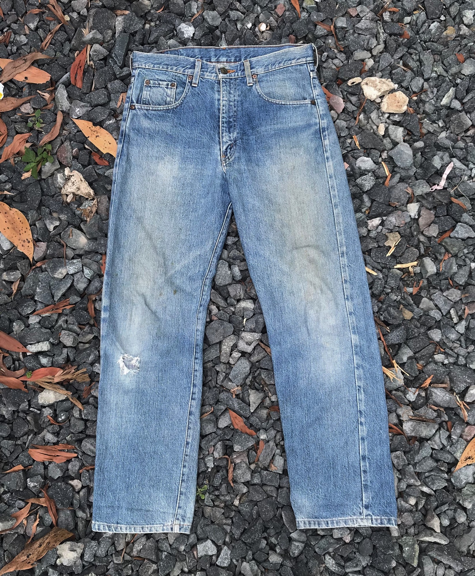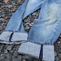 Vintage Levis 502 Big E Redline selvedged distressed jean ripped rock kurt cobain style japan made