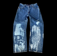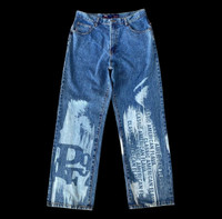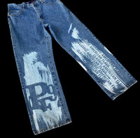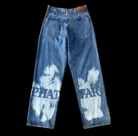 VINTAGE 1992 PHAT FARM LOOSE JEAN CLASSIC AMERICAN FLAVA PAINTED SPELL OUT W35X31/5 INCH