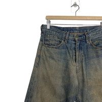 Welcome❗Thanks for visiting our shop❤️❤️ PLEASE READ & KNOW BEFORE YOU DO PAYMENT. Used in good condition. 💥Levis 503 Selvedge 💥Distressed faded dirty jeans Good Vintage Conditions. 💥measurement (garment laid flat) size 32 (size on tag 30x36 ,by measurement suitable for 32 ) Measurements I look personally : 👉waist : 16 inches (32) 👉Outseam: 40 inches 👉Inseam: 30 inches 👉Front rise: 11 inches 👉Thigh: 12 inches (24) 👉Knee: 9.5 inches (19) 👉Leg opening: 9 inches (18) The ensure best fit, measure against a piece that you already own. 🔥ALL SHIPMENTS OVER 100USD CAN GET FREEGIFT FROM ME🎁🎁 PAYMENTS AND SHIPPING ▪️Accept “PAYPAL” only ▪️This item will be ship along with tracking number after received a complete payment ▪️After 2 days you can trace the parcel via DHL, Malaysia Post website ▪️Expected shipping period takes within 3-7days to arrived to its destination around the world Dear valued customer: ▪️Please don’t expect this item condition is 100% like new unless I have mention it ▪️PLEASE DOUBLE CHECK YOUR SIZING because item CANNOT REFUND. Please be careful to make payment. ▪️Please do not hesitate to contact me if you any inquiries. Its my great pleasure to have a conversation with customer NO REFUND ❗❗ Support and review & ENJOY YOUR SHIPPING H17