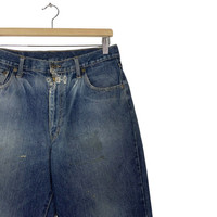 Welcome❗Thanks for visiting our shop❤️❤️ PLEASE READ & KNOW BEFORE YOU DO PAYMENT. Used in good condition. 💥Machope Denim 💥Distressed faded dirty Jeans Good Vintage Conditions. 💥measurement (garment laid flat) size 30 (size on tag 31x33 ,by measurement suitable for 30) Measurements I look personally : 👉waist : 15 inches (30) 👉Outseam: 38.5 inches 👉Inseam: 27 inches 👉Front rise: 11.5 inches 👉Thigh: 11.5 inches (23) 👉Knee: 10 inches (20) 👉Leg opening: 8.5 inches (17) The ensure best fit, measure against a piece that you already own. 🔥ALL SHIPMENTS OVER 100USD CAN GET FREEGIFT FROM ME🎁🎁 PAYMENTS AND SHIPPING ▪️Accept “PAYPAL” only ▪️This item will be ship along with tracking number after received a complete payment ▪️After 2 days you can trace the parcel via DHL, Malaysia Post website ▪️Expected shipping period takes within 3-7days to arrived to its destination around the world Dear valued customer: ▪️Please don’t expect this item condition is 100% like new unless I have mention it ▪️PLEASE DOUBLE CHECK YOUR SIZING because item CANNOT REFUND. Please be careful to make payment. ▪️Please do not hesitate to contact me if you any inquiries. Its my great pleasure to have a conversation with customer NO REFUND ❗❗ Support and review & ENJOY YOUR SHIPPING H16