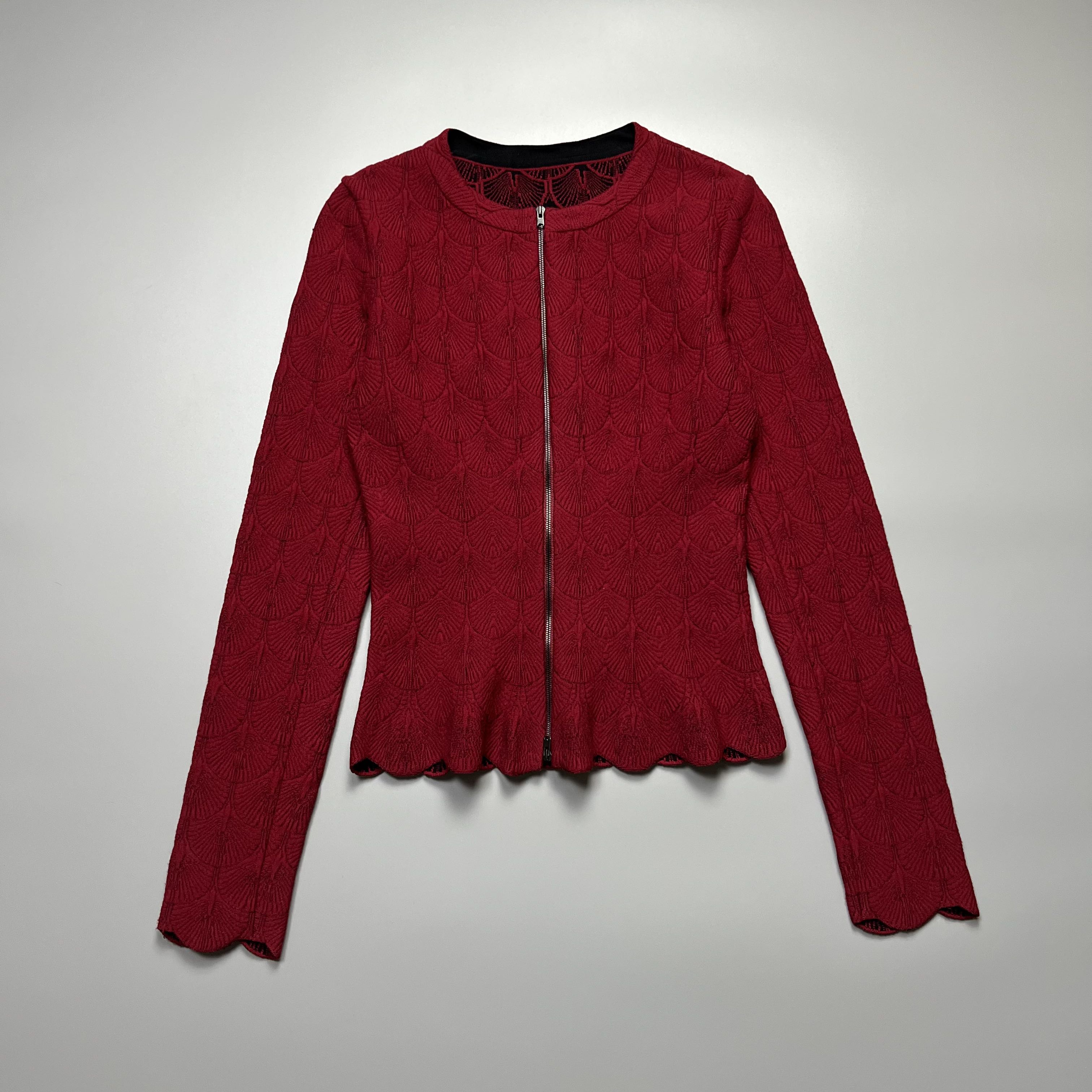 Alaia - Jacquard Knit Zip Wool - Jacket Size: 38 (Womens) Length: 21 Width: 15 Shoulder: 13.5 Sleeves: 25 Hem: 15 Conditions: It can be passed to 9.5/10 overall No issues at all. No discolorations, No scratches on Fabric. No holes and bad odor This Alaia is a new model or New Release