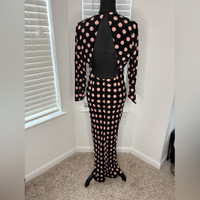 RIXO Black and Pink Polka Dot Long Sleeve Dress
