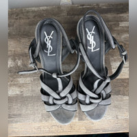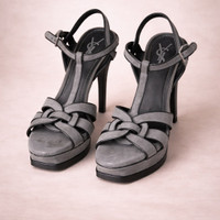 Vintage Yves Saint Laurent Tribute Gray Strappy Women's Heels