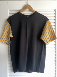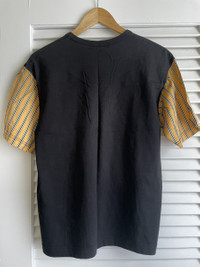 Description CDG Comme des Garcons Homme Black Shirt with silk sleeves Size: Small Excellent condition Note: Inner materials tag has been cut (see photo)