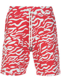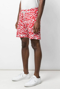 BRAND NEW with tags Retails for: $245 Striking Red/Seafoam contrast tiger stripe pattern. Red cotton all-over print features an elasticated drawstring waist, side pockets and a knee length. Very comfy. 100% cotton. WAIST: 16" RISE: 11" INSEAM: 5" LENGTH: 18"