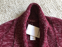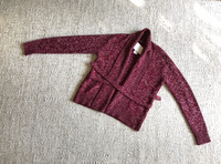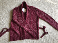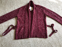 BRAND NEW WITH TAGS Retails for $1,295.00 This is an extremely luxurious hand made Cashmere and Wool cardigan. 70% wool/ 30% Cashmere A thick cashmere blend, with a wrap silhouette. A tie detail closes the cardigan, and a shawl collar and elongated sleeves add coziness. CHEST: 21.5" SHOULDER: 18.5" SLEEVE: 27" LENGTH: 26"