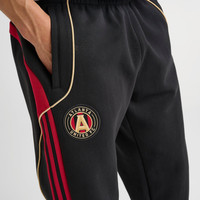Model Sizing - Model is 6'2" and wears size Large. Waist measures 32" and Chest measures 40". Size & Fit - Standard fit is athletic and relaxed Product Features - Soft yet durable doubleknit fabric withstands the rigors of life on the road - Woven Atlanta United FC club crest and embroidered adidas logo for an authentic look - Vibrant piping accents in official team colors showcase your team pride - Elastic waistband with an external drawcord to dial in the perfect fit - Dual side pockets for secure on-the-go storage - Ankle cuffs with adjustable zips provide a streamlined and personalized fit - 66% cotton, about 34% recycled polyester - Machine wash - The adidas Atlanta United FC MLS Travel Jogger Pants are imported. Designed to look and feel like the team-issued gear the pros wear before and after practice and on travel days, the Men's adidas Atlanta United FC MLS Travel Jogger Pants let you enjoy athletic comfort at its finest. Flush with official team detailing and wavy lines in team colors, these joggers elevate your comfort to the major leagues while maintaining your sporty aesthetic and supporting your favorite club.