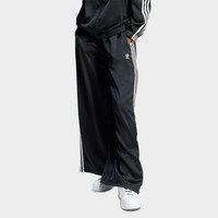Size & Fit - Loose fit Made from Sustainable Materials - Made from around 70% recycled resources in efforts to end plastic waste and reduce our collective carbon footprint - Around 97% recycled Polyester and 3% Elastane Product Features - Loose-fitting track bottoms with signature 3-Stripes down legs and embroidered Trefoil logo on left thigh - Wide leg design for modern aesthetic - Elasticated waistband with adjustable drawcord offers a personalized fit - Zippered side pockets for convenient and secure storage of essential items and shelter for cold hands - Machine wash - The adidas Originals adicolor Satin Wide Leg Track Pants are imported. These Women's adidas Originals adicolor Satin Wide Leg Track Pants are the perfect bottoms for brunch and beyond. Crafted from a silky, planet-friendly polyester fabric, these loose-fitting track pants are embellished with the ever-iconic 3-Stripes along the leg, an embroidered Trefoil logo, and a sheen finish for a look that's equally sporty and sophisticated.