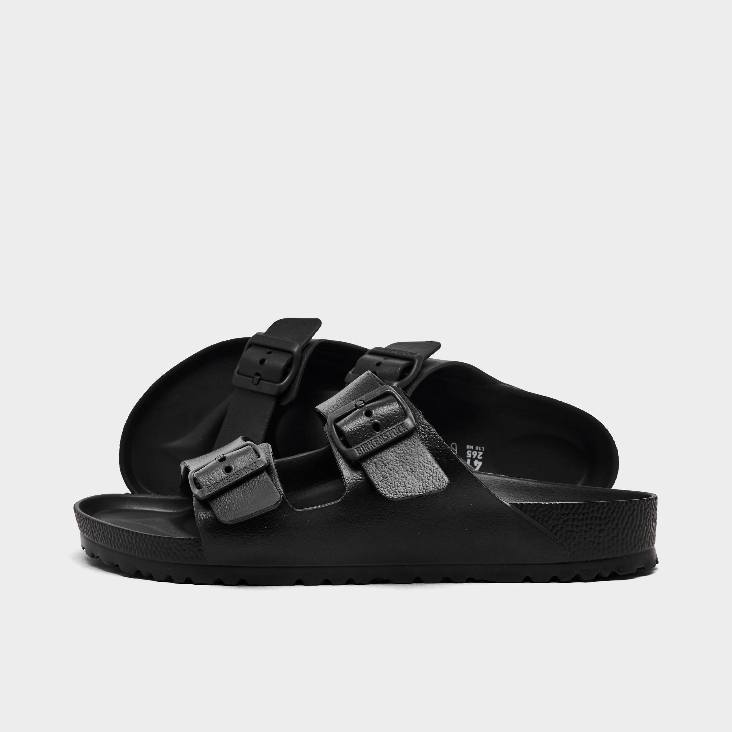 Sizing Information EURO SIZING: Please see conversion for the best size to choose - Men's US 8 = Euro 41 - Men's US 9 = Euro 42 - Men's US 10 = Euro 43 - Men's US 11 = Euro 44 - Men's US 12 = Euro 45 - Men's US 13 = Euro 46 Product Features - Comfortable open-toed sandals - Slip-on entry with adjustable buckle-closure straps - Waterproof material - Contoured foam cushioned footbed - Raised toe bar and roomy toe box to encourage natural gripping motion of the foot - Transverse arch support ensures proper alignment and a solid stance - Longitudinal arch support for stability with each step - Deep heel cup cradles the heel - Shock-absorbing midsole - Flexible outsole for multi-surface traction - The Birkenstock Essentials Arizona EVA Sandals are imported. Slip into sublime comfort with the Birkenstock Essentials Arizona EVA Sandals. A summertime essential, these laid-back sandals possess a fun look and laid-back vibes for plenty of warm-weather fun and vacation vibes.