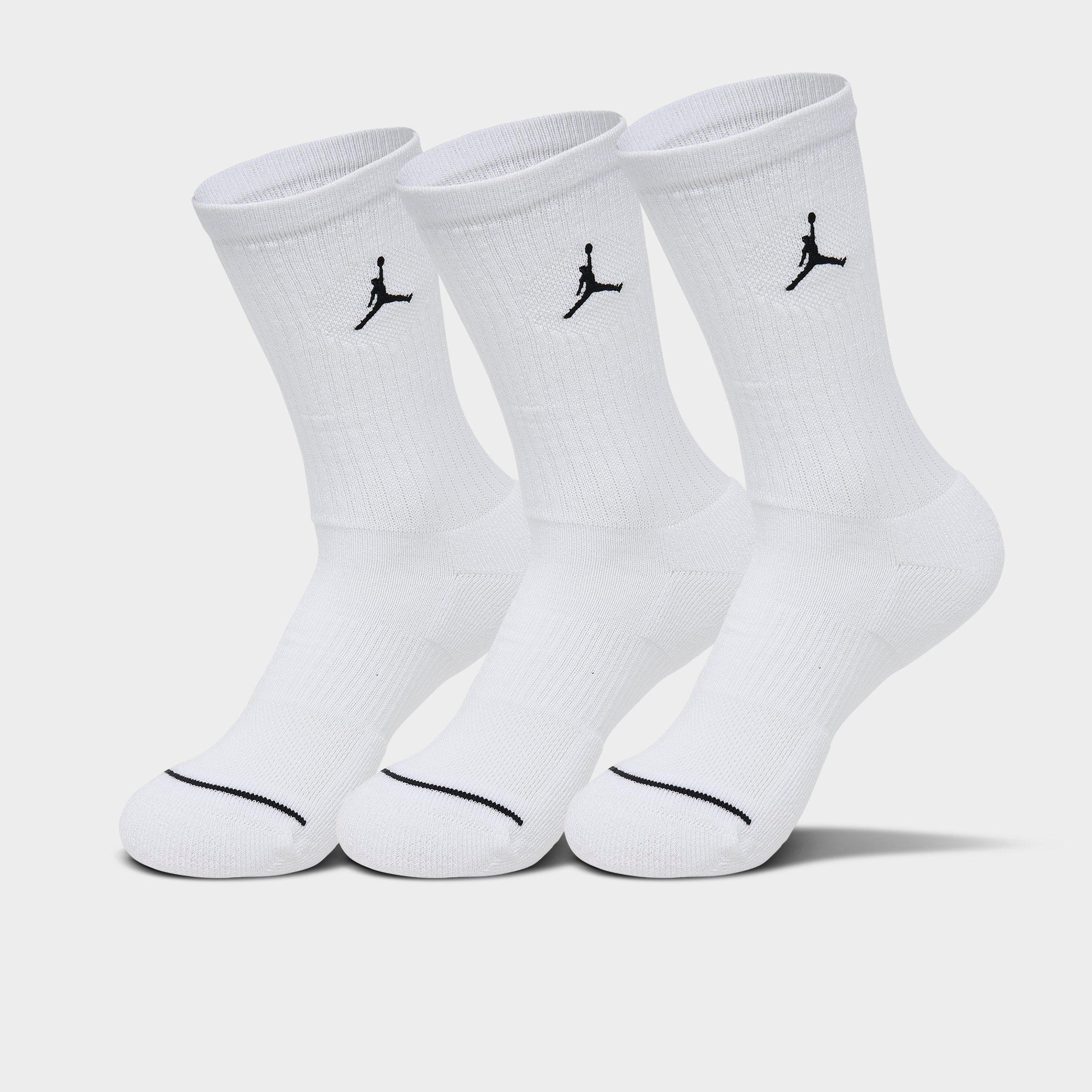 - Nike Dri-FIT tech wicks away moisture - Cushioned heel and forefoot - Band around the arch feels snug and supportive - Breathable knit pattern on top for ventilation - Reinforced heel and toe are made to last - 3 pairs per pack - 96% polyester, 3% spandex, 1% nylon - Machine wash - The Jordan Everyday Crew Socks (3-Pack) are imported. Everyone needs a reliable, go-to sock. Make the Men's Jordan Everyday Crew Socks (3-Pack) your choice. They have Dri-FIT tech to wick away moisture, cushioning and are breathable to keep you comfortable.
