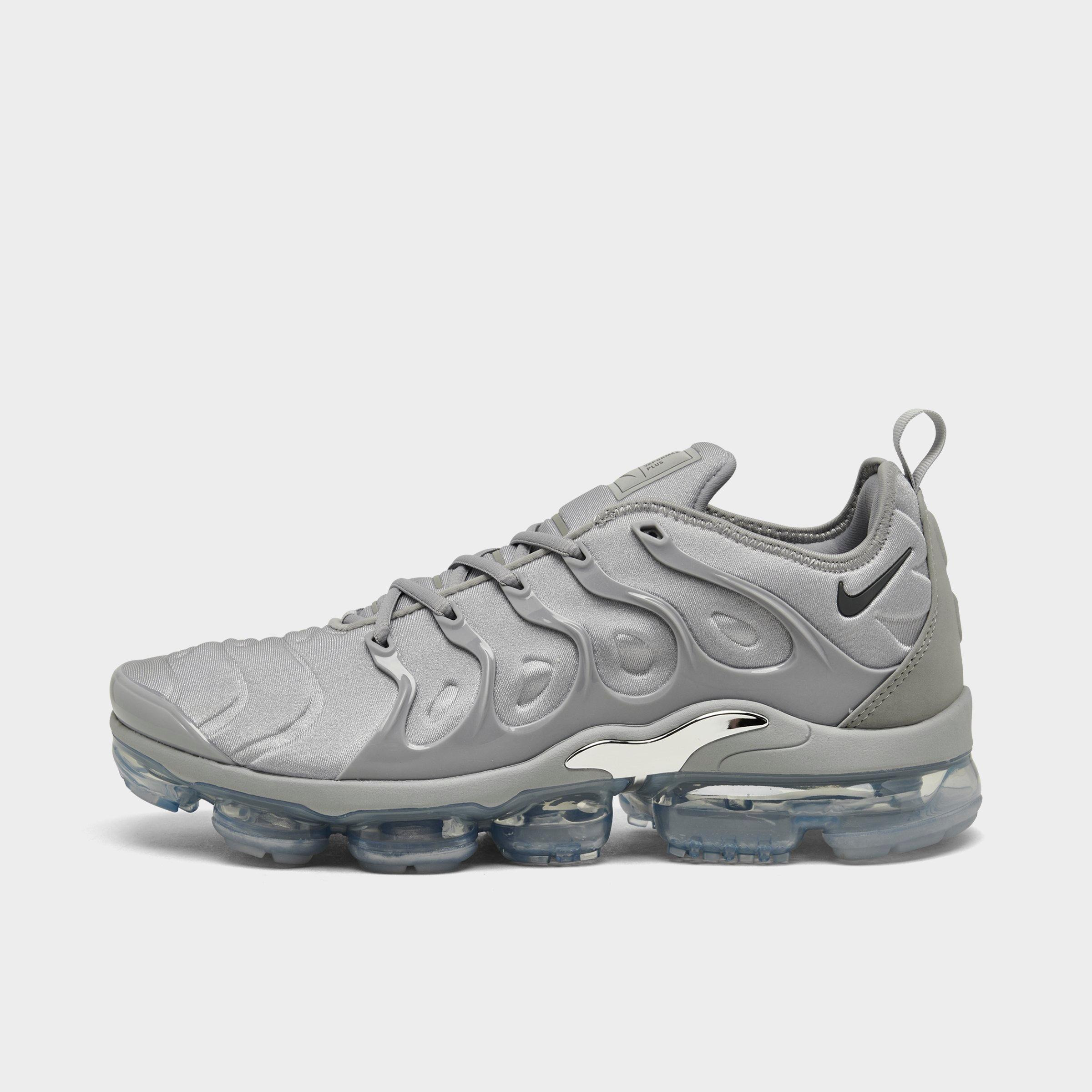 - Compression-molded upper for enhanced durability - Bootie construction provides a snug and secure fit - Floating, molded TPU cage is a direct callback to the original 1998 design - Revolutionary VaporMax Air sole for soft, lightweight responsiveness - Durable rubber outsole - Rubber pods on the outsole in high-wear areas for enhanced durability - Integrated lugs provide aggressive traction - The Nike Air VaporMax Plus is imported. Over seven years in the making, the Men's Nike Air VaporMax Plus Running Shoes are a transcendent revolution. This sleek hybrid sneaker not only brings the comfort you crave, but its unique style makes them a standout for everyday use. A snug, foot-hugging bootie construction provides the stability you want, while iconic VaporMax cushioning enhances that springy bounce you can feel with every step. Completely transforming the standard Air Max, the VaporMax Plus is a direct nod to the Air Max Plus of 1998.