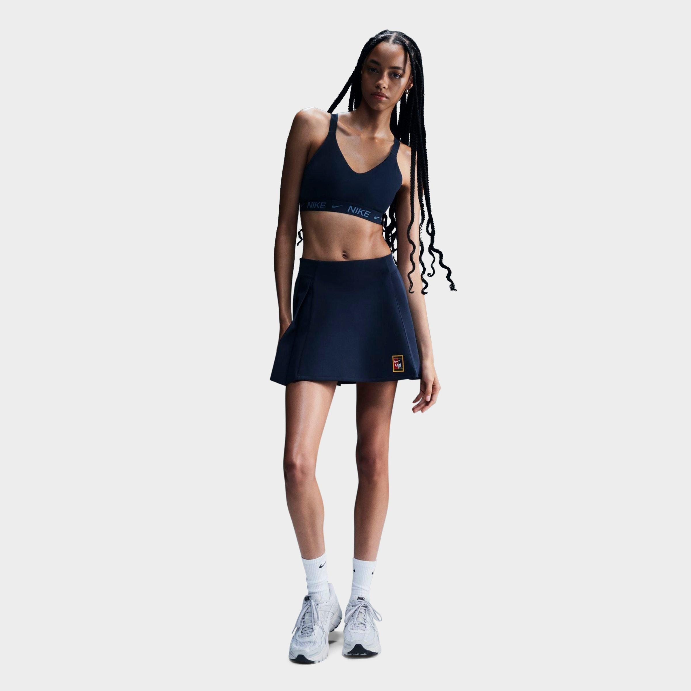 Size & Fit - Athletic, body-hugging fit Product Features - Sleek, medium-support bra with embossed Nike Swoosh tape logo underband - Engineered padding for stay-put support and a smooth silhouette - Supersoft jacquard chest band for ultimate comfort and unrestricted upper body mobility - Fully adjustable straps and removable padding for customizable look and fit - Nike Dri-FIT technology for all-day moisture management - Body: 78-79% Polyester and 21-22% Bottom hem: 53% Polyester and 28% Nylon and 19% Spandex. Straps: 73% Nylon and 27% Spandex. Lining: 84% Polyester and 16% Spandex. Interlining: 80% Polyester and 20% Spandex. Pad top fabric/Pad back fabric: 100% Polyester. Pad: 100% Polyurethane. - The Nike Dri-FIT Indy Medium Support Sports Bra is imported. You won't let your gym goals pass you by without giving chase when you're geared up in this Women's Nike Dri-FIT Indy Medium Support Sports Bra. Crafted from a supple, soft jacquard fabric, this racerback bra is equipped with adjustable straps, silhouette-smoothing engineered padding, and moisture-wicking Nike Dri-FIT technology to keep sweat under control while you're conditioning.