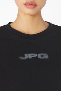 Black jersey baby tee with JPG print. PRODUCT DETAILS - Tight fit - Crew neck - Digital printing - Materials: 96% organic cotton, 4% elastane - Made in Portugal - Reference : 25/03-W-TO300-J002-0004
