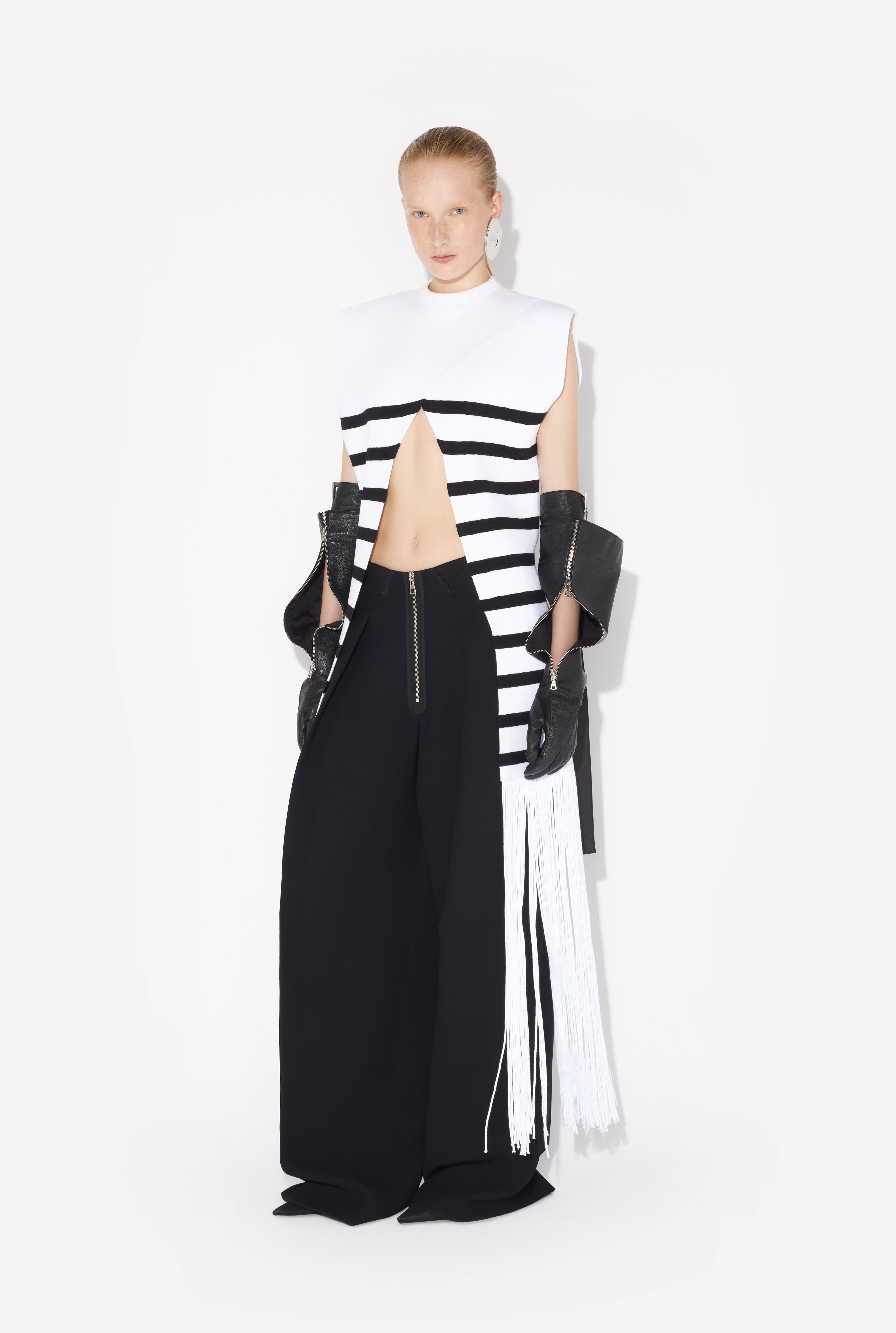 Black and white cotton Mariniere with slit in front and fringe details. PRODUCT DETAILS - Loose fit - Crew neck - Material: 100% brushed cotton - Made in Italy - Reference: 25/33-F-PL073-M086-0100