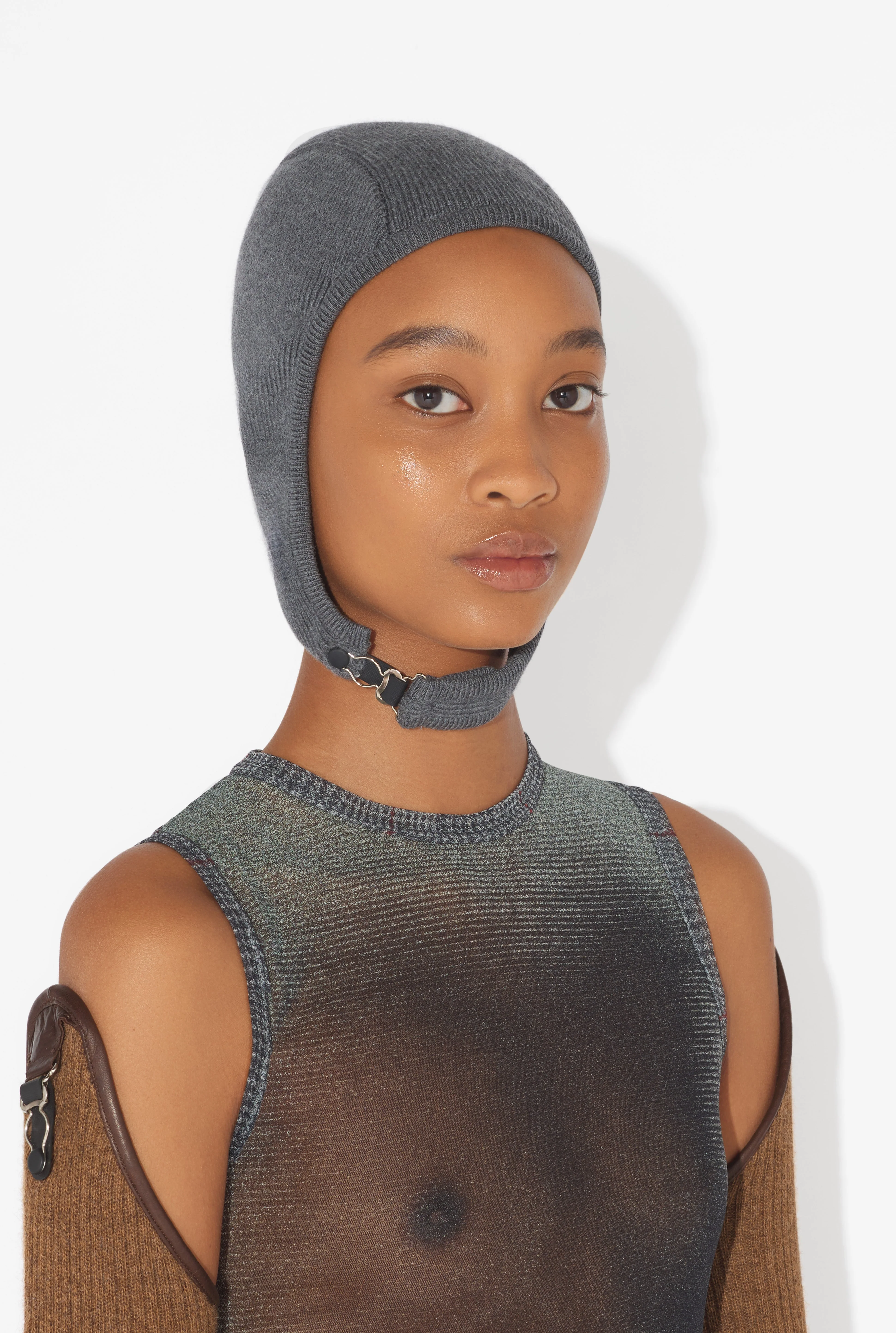 Gray merino wool beanie with garter strap fastening. PRODUCT DETAILS - Garter strap fastening - Material: 100% merino wool - Made in Italy - 25/04-U-AC033-K020-07