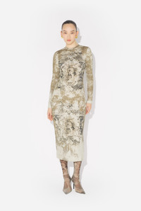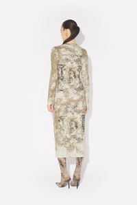 Long beige ribbed cotton dress with “Medaillon” print. PRODUCT DETAILS - Tight fit - Materials: 96% cotton, 4% elastane - Made in Portugal - Reference : 25/03-W-DR018-J013P-6965