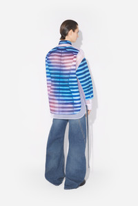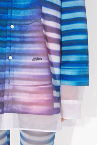 Blue poplin dress with “Air” print and silk see-through effects. PRODUCT DETAILS - Loose fit - Mother-of-pearl cuff buttons - Mother-of-pearl button fastening - Main material: 100% polyester - Secondary material: 100% silk - Made in Portugal - Reference : 25/03-U-ST032-W018P-565034