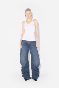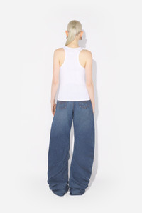 White ribbed cotton tank top with engraved Jean Paul Gaultier piercing ring detail. PRODUCT DETAILS - Tight fit - Removable piercing ring with Jean Paul Gaultier engraving on left shoulder - Material: 100% cotton - Made in Bulgaria - Reference : 25/03-W-TO375-J014-01