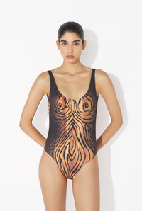 Swimsuit with “Wood” print. PRODUCT DETAILS - Open back - Materials: 83% polyester, 17% elastane - Made in Portugal - Reference : 25/03-W-SW069-J009P-0060