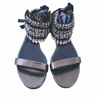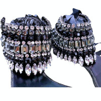 CASADEI Swarovski Crystal Ankle Wrap Skimmer Starlight Sandals NIB