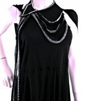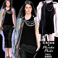 Featured on the 2002 Fall Runway, Phoebe Philo x Chloe art deco top delivers a sensational stand-alone designer piece. Divine vintage top features: •Beaded edge collar with silver embroidery embellished strips across the chest. •Four richly embellished silver metal edged strands drape down the front. •Empire waist with draped back •Hand finished hem gives bottom edge a slightly ruffled effect. •Top fastens with 3 snaps at back of beaded edge neck. •Unlined •100% Viscose Made in France. Pre-owned in excellent condition Size 42 -Best recommended for a U.S. size 6 or smaller •Chest: 30- 31" •Waist: 30 - 34" •Length: 29" *Measurements provided as a courtesy and do not guarantee fit.