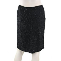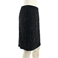 Dolce & Gabbana vintage 90's skirt is decorated in a black-on-black bugle beaded floral pattern. Swanky short skirt is lined in a stretch fabric with a semi-stretch shell and hidden right size zipper. Waistband is fixed and does not stretch. A196- 9126 Made in Italy Size 42 •26” Waist •34” Hips •20” Length Fabric: 50% Nylon, 35% Silk, 10% Polyamide, 5% Elastane Vintage skirt is in excellent condition with a few loose beads at hem. *Measurements are provided as a courtesy and not a guarantee of fit*