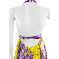 1990's JEAN PAUL GAULTIER Mythical Print Yellow and Purple Vintage Halter Dress