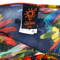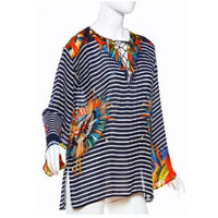 Vintage JEAN PAUL GAULTIER SOLEIL Striped Tunic w/Parrot Feather Printed Accents