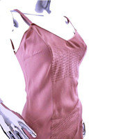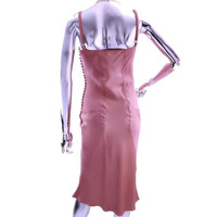 Bias cut dress is from John Galliano's A/W 2000 Collection featuring his signature style: delectable details, design, and couture inspired cut. An exquisite collectible in rare like-new condition. •Sophisticated bias-cut dress is done in a dusty pink acetate/viscose blend delivering a majestic mix of matte and shine. •Front bodice is embellished with hatchet tonal top-stitching mimicking a corset. •28 covered buttons seduce 16 inches of the left side. •Adjustable lingerie straps embellished with embroidered ruffle trim. •Unlined, bias cut dress drapes elegantly on the body and will form to fit after just a couple hours of wearing. •Style #: 0H12068010 •Fabric and Dress Made in France. •Fabric: 68% Acetate/32% Viscose •Size 38 French/4 US •Chest: 32” •Waist: 28" •Hips: 34" •Length taken down back center: 36" •Bottom right-side slit: 8.5" Worn 1x, dress is in pristine condition Measurements are provided as a courtesy and not a guarantee of fit.