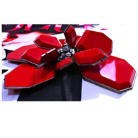 Vintage LANVIN PARIS 3-D Red Resin & Crystal Floral Brooch 2007 Runway