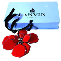 Created by Alber Elbaz for Lanvin Paris and presented on the Fall 2007 runway, a statement making brooch that guarantees a bold finishing touch to any ensemble; wear it on your shoulder to any cocktail attire, or at your waist, affixed to your jeans. •3-D luxurious large floral brooch is in a poppy red resin with crystal accents at the center and silver-tone metal edges. •Signature hallmark on the back directly under the clasp: Lanvin Paris Made in France •Measures approximately 6.5" W x 6.5" L •Weight (g) 196 Hairline scratches commensurate with age, but overall brooch is in beautiful condition. Ships w/Lanvin blue box. Box shows some wear. In other words, it is not in perfect condition.