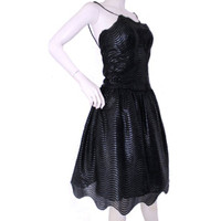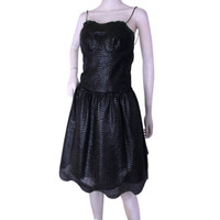 "Luxury wear for Urban Diva's" by Maria Lucia Hohan, here in a luxurious party dress that boasts a textured leather-like look with spaghetti straps so thin, the dress appears strapless. Size Italian 40 - French 36 – UK 8 – US 4 •Bust: 28" •Waist: 28" •Hips: 45" •Length: 33" •Limited series edition dress all handcrafted! •100% Polyester Shell •100% Rayon Lined. •Rayon Tulle lining provides the bottom of dress waist down with a full skirt. •Padded bust. •Multiple Hook & eye closure down back. Dress is Brand New with Tags! Pristine condition. *Measurements are provided as a courtesy and not a guarantee to fit.*