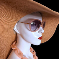 An authentic pair of Miu Miu spectacle style sunglasses with a designer spin on the classic aviator. •Orchid color frames •Opaque lenses •Gold metal arms with tortoise acetate ends •Adjustable nose pads •Made in Italy. •Style #SMUO3Q •Interior arm: SMUO3Q 55 24 TV1-3E2 140 2N •Serial number embedded in upper right lens •Ships with signature rose keeper bag and matching case. •In perfect condition; worn once.