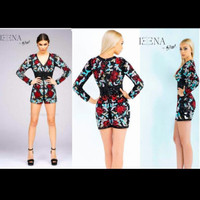 IEENA x MAC DUGGAL Multi-Color Sequin Beaded Short Romper